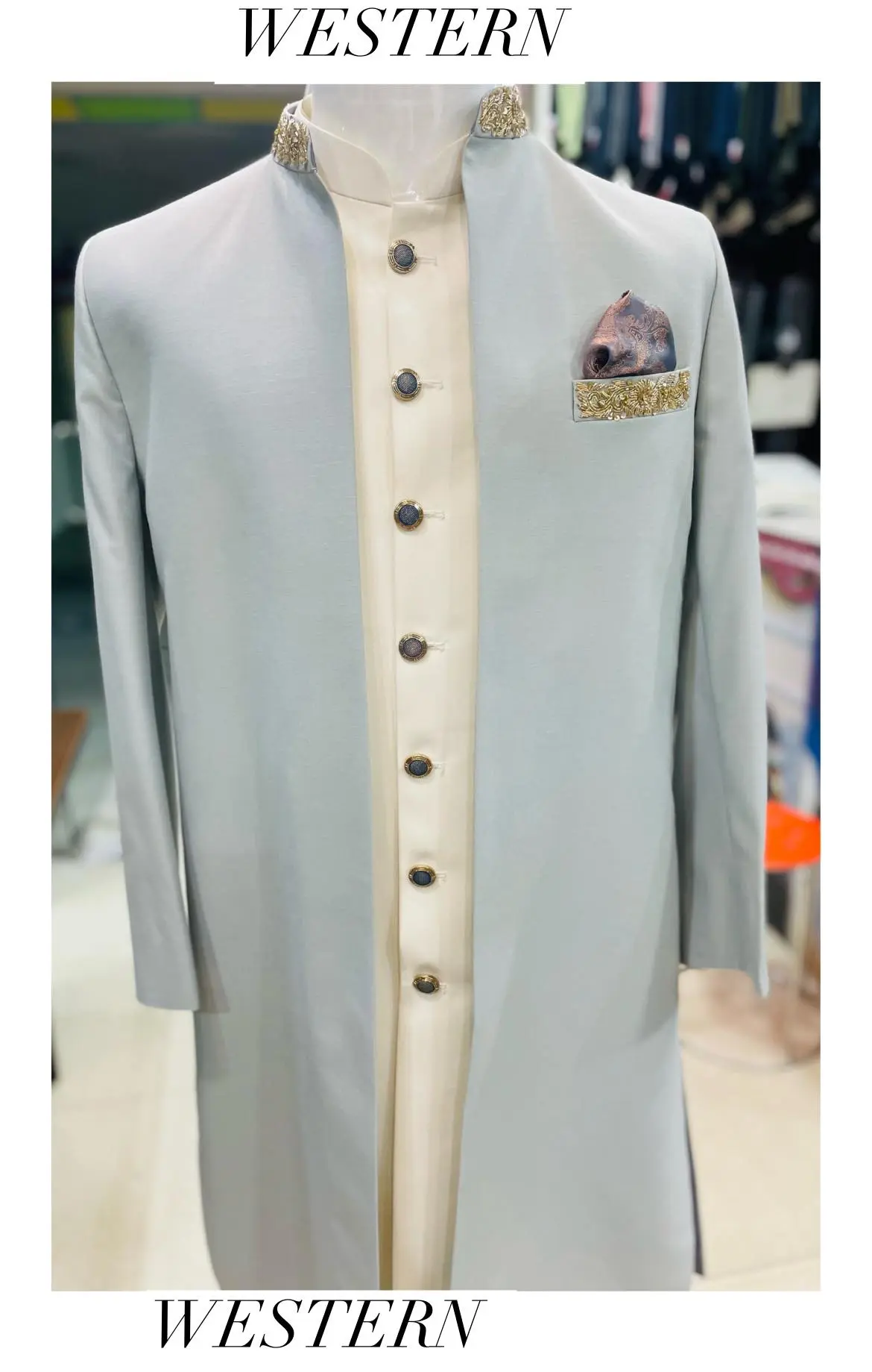 Tailored from a premium suiting fabric with a smooth matte finish, the design features a structured silhouette, standing Nehru collar, and hand-finished detailing that speaks of understated luxury. The minimalist lines and deep black tone create a statement of quiet power and sophistication.