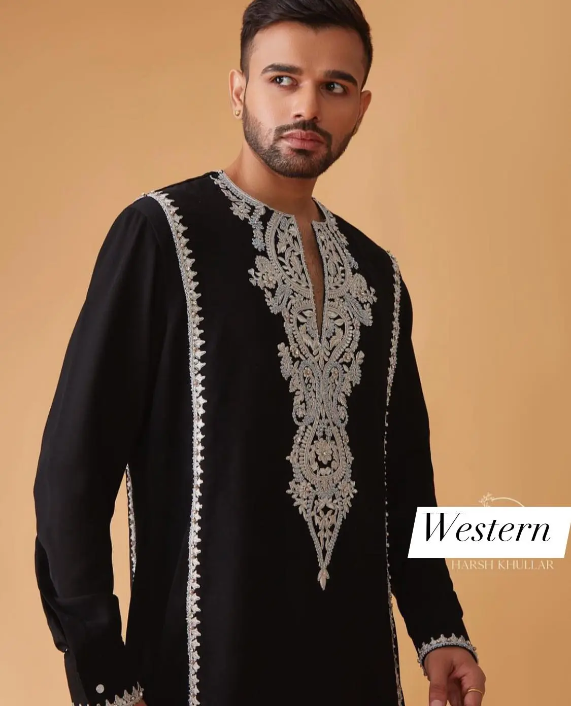 Inspired by South Asian regality and refined tailoring, this black Nehru Suit embodies timeless elegance with a modern edge. Crafted meticulously by our expert artisans at Western Tailors & Fashion, it blends traditional charm with contemporary precision — perfect for any grand occasion or dignified event.
