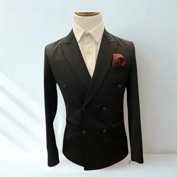 Redefine sophistication with this timeless black double-breasted blazer, designed for men who prefer sharp tailoring and understated luxury. With its clean lines and elegant structure, this blazer delivers a confident, refined look suitable for both formal and professional settings.