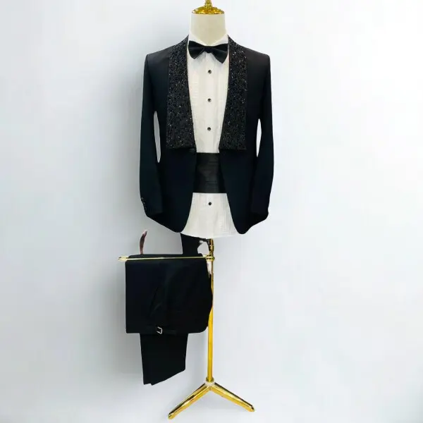 Ideal for weddings, receptions, gala dinners, formal parties, evening events, and luxury celebrations. Perfectly styled with a tuxedo shirt, bow tie, and formal trousers.