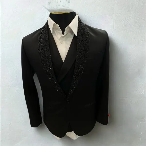 With its embellished lapel, modern tailoring, and luxury finish, this tuxedo blazer delivers standout sophistication, comfort, and timeless appeal—making it a perfect choice for men who dress to impress.
